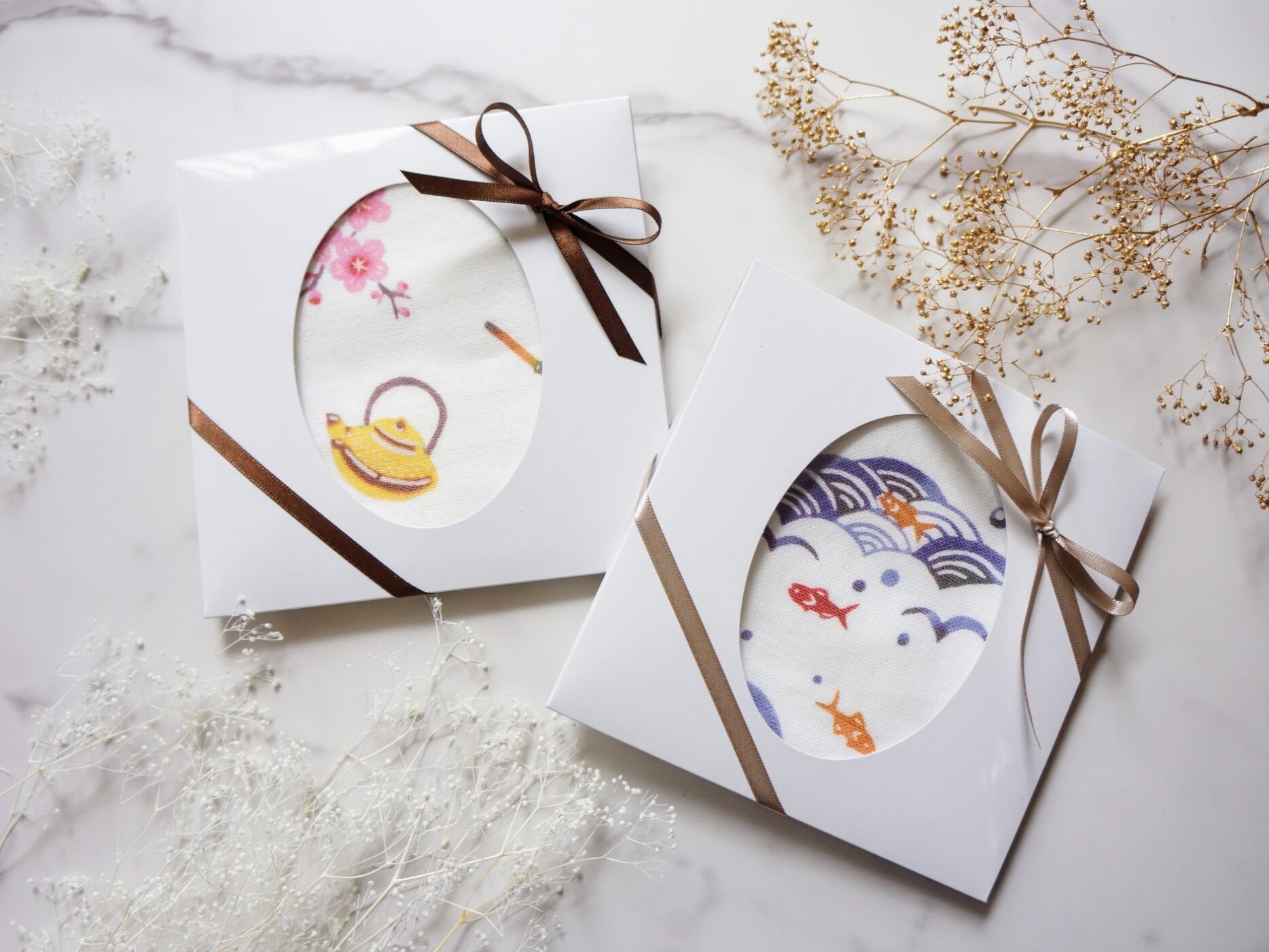 手染めの青海波と魚の柄をプリントしたオリジナルハンカチです。