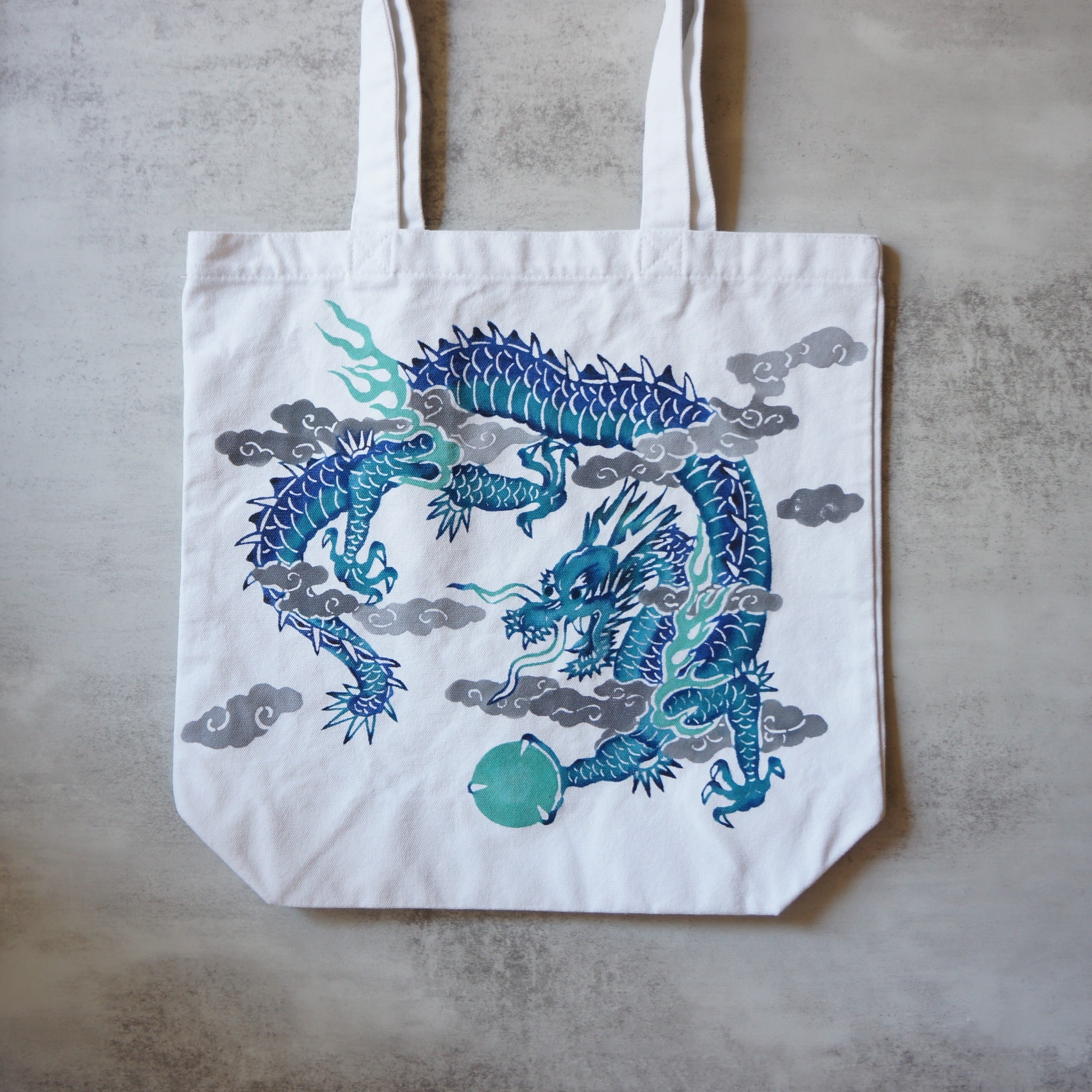琉球紅型の古典柄、龍をトートバッグに染めました。