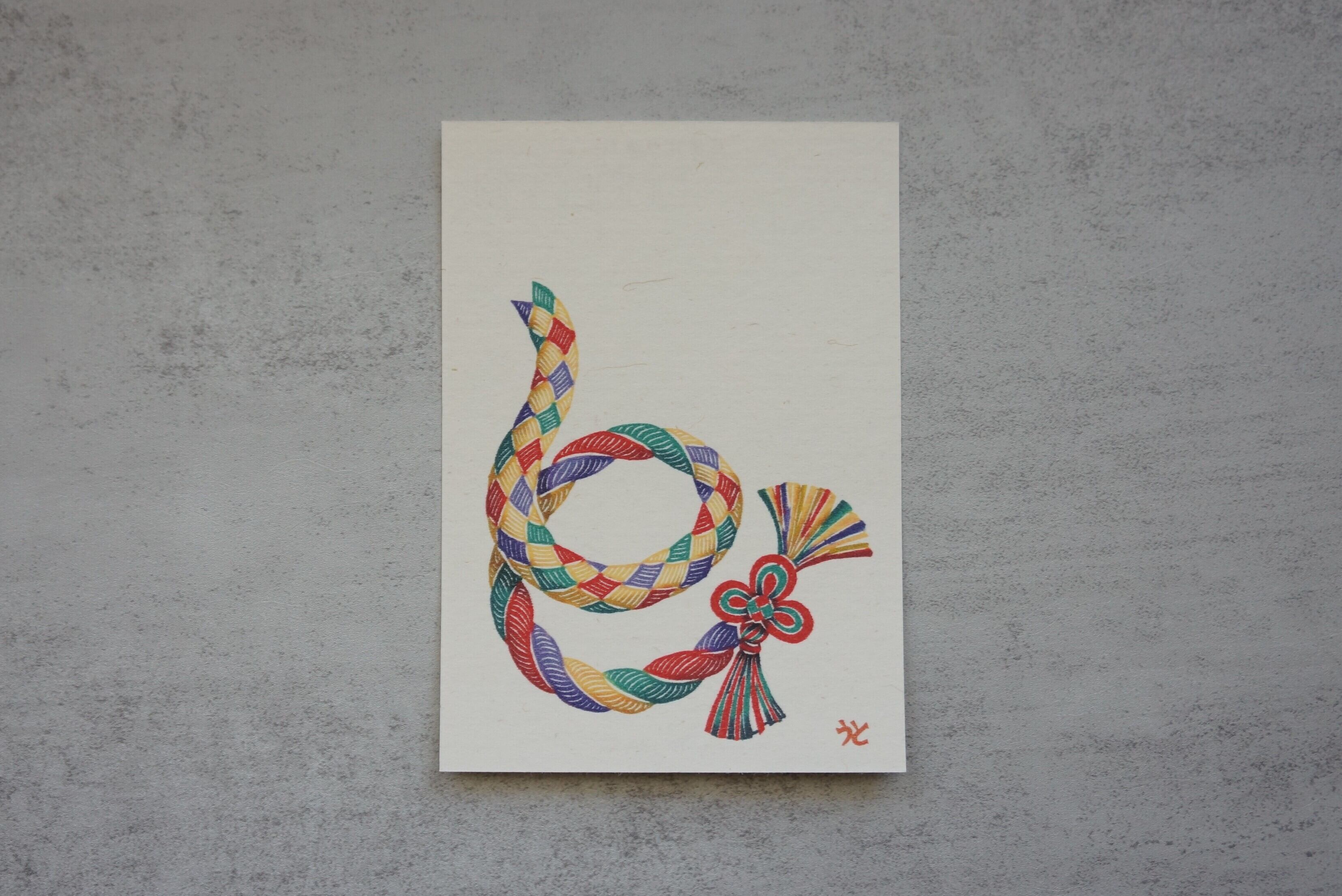 沖縄の郷土玩具である指ハブと、しめ縄をかけあわせて描きました。